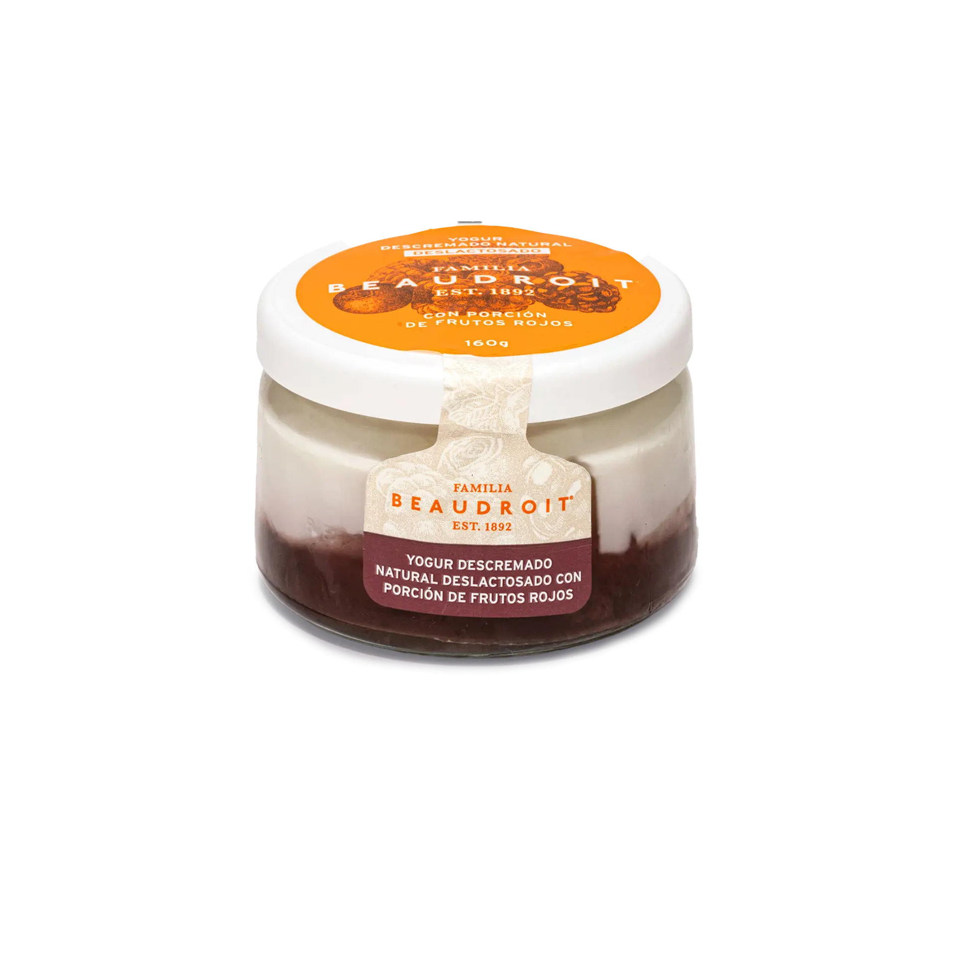 Leche descremada pasteurizada, leche en polvo descremada, enzima lactasa, fermentos lácteos, estabilizante: pectina cítrica, preparado de frutos rojos (12.5%): frutos rojos, azúcar, carragenina, espesante: almidón modificado y goma xántica, acidulante: ácido cítrico. CONTIENE LECHE