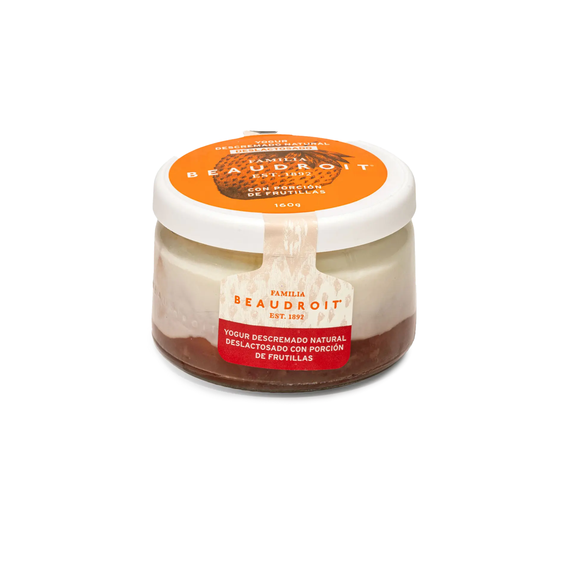 Leche descremada pasteurizada, leche en polvo descremada, enzima lactasa, fermentos lácteos, estabilizante: pectina cítrica, preparado de frutillas (12.5%): frutillas, azúcar, carragenina, espesante: goma xántica y almidón modificado; acidulante: ácido cítrico. CONTIENE LECHE.