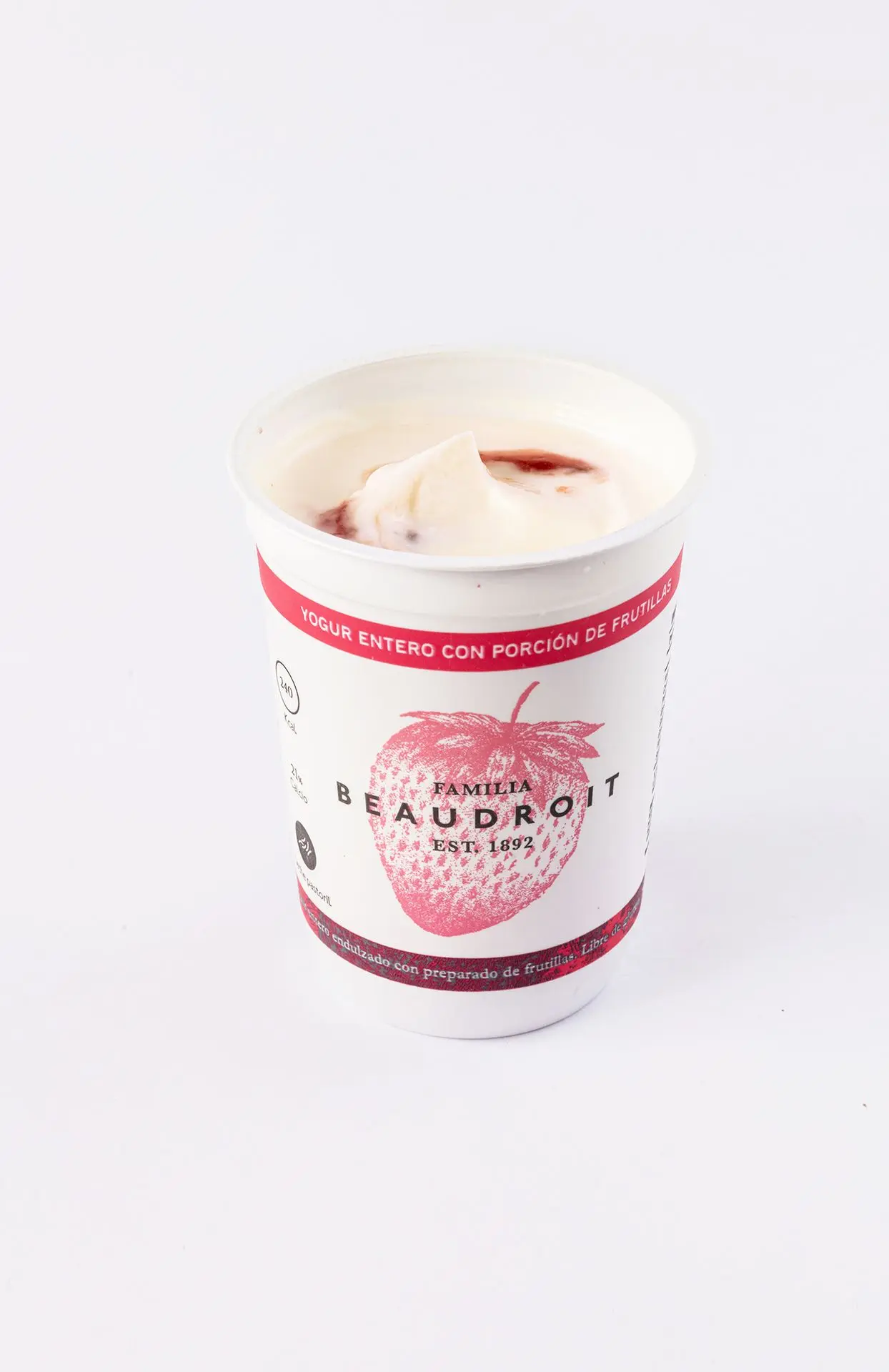 Yogur (87,5%): Leche entera pasteurizada, leche en polvo descremada, leche en polvo entera, azúcar, fermentos lácteos, estabilizante: pectina cítrica, preparado de frutillas (12,5%): Azúcar, frutillas, carragenina, espesantes: almidón modificado y goma xántica, acidulante: ácido cítrico. CONTIENE LECHE